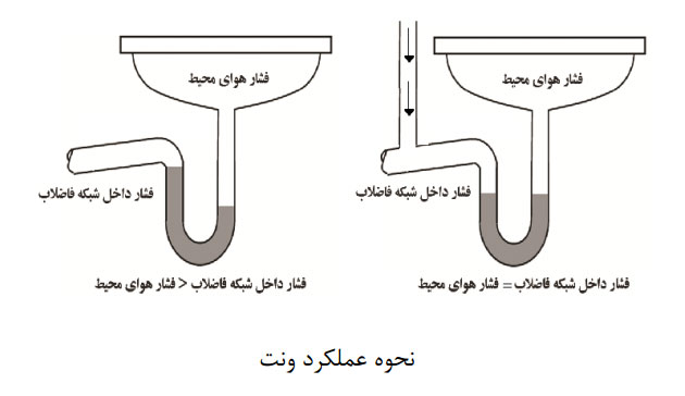 برای جلوگیری از تخلیه سیفون و از بین رفتن سد آبی، باید فشار در سیستم فاضلاب متعادل شود. طبق مبحث 16مقررات ملی ساختمان، تغییرات فشار ناشی از فشار معکوس، مکش سیفونی یا عوامل دیگر در شبکه لولهکشی فاضلاب ساختمان نباید بیش از 38± میلیمتر آب باشد و عمق آب هوابند سیفون که بر اثر این تغییرات فشار یا تبخیر، کاهش مییابد در هیچ حالتی نباید از 25 میلیمتر کمتر شود. جهت نگه داشتن فشار در محدوده موردنظر و حفظ سد آبی سیفون میتوان از لولهکشی ونت استفاده نمود. لوله ونت هوا را از بام به پشت سیفون میرساند و فشار منفی ایجاد شده را متعادل میکند با برابر شدن فشار در دو سمت سیفون، سد آبی حفظ خواهد شد.